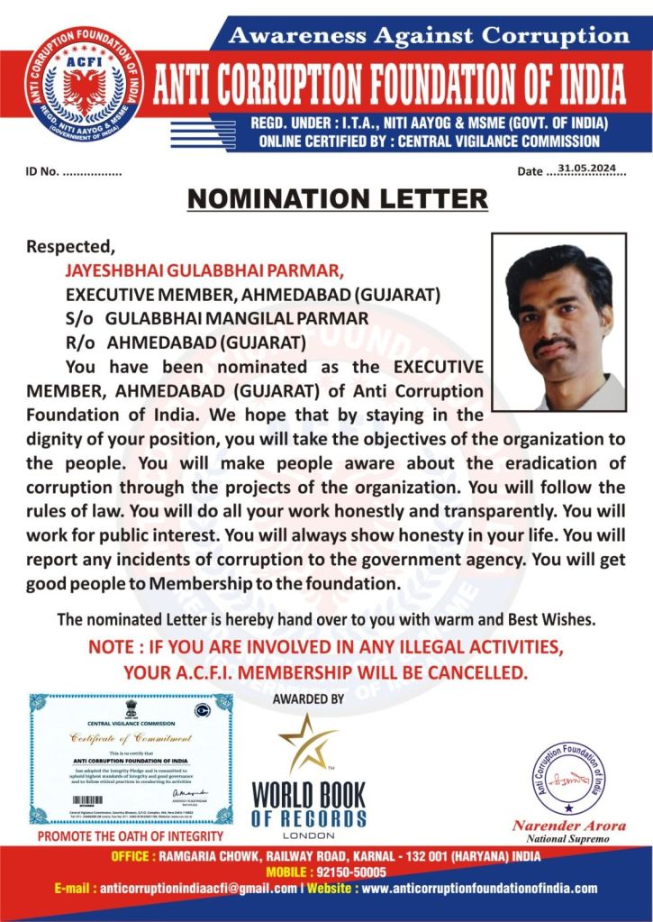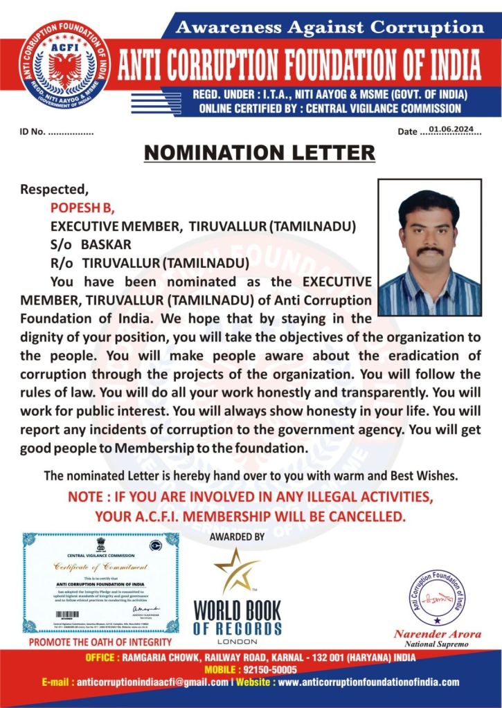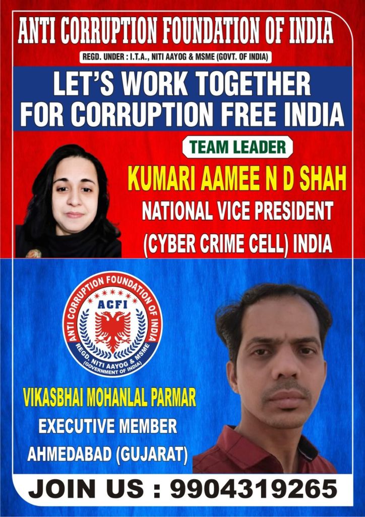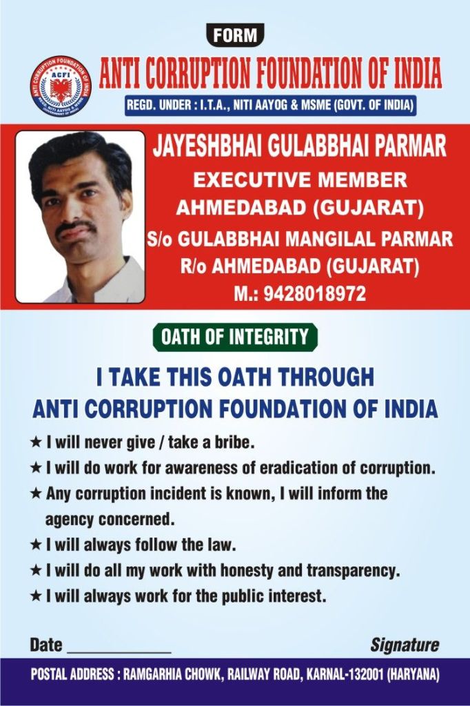 Anti Corruption Membership It’s So Much Benefites At Lifetime Validity So Joining This Membership Contact Me Aamee Shah